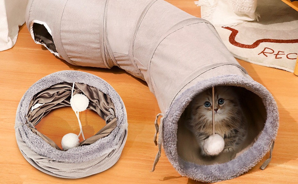 Katzentunnel Für Indoor-Katzen U2013 Faltbares Katzentunnelbett Mit Haengendem Ball, Weicher Kristallsamt, Rundes Donut Spielzeug, Faltbarer Haustier Spieltunnel Fuer Kaetzchen Bis 12 Bs, Grau 98831245