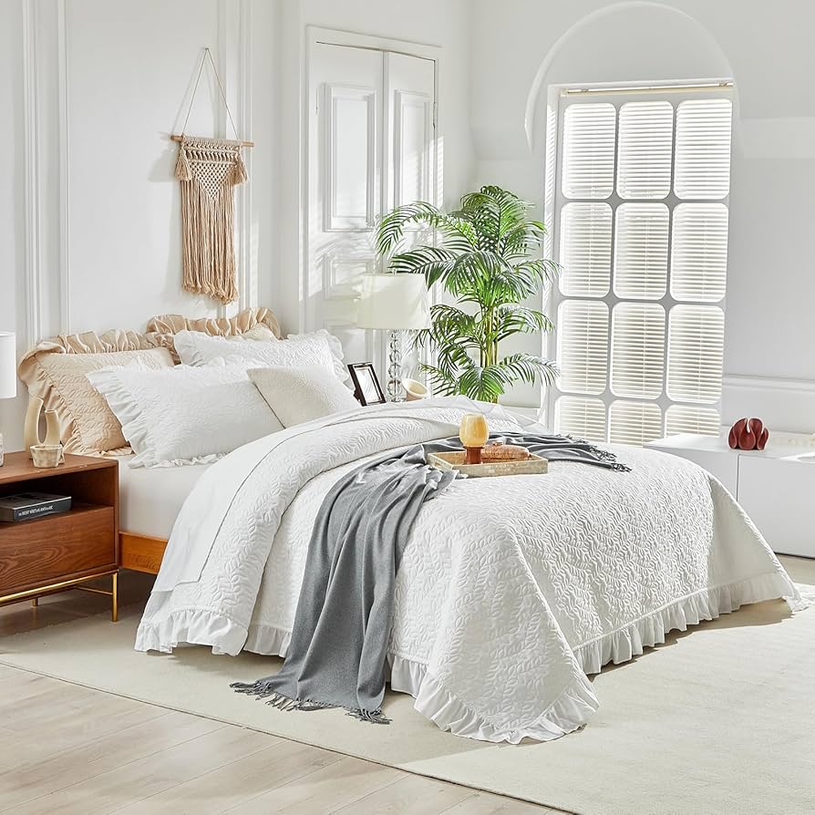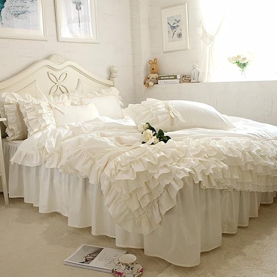 Andency Weißes Rüschen-Bettwäsche-Set Für King-Size-Betten, Shabby-Chic- Bauernhaus-Bettdecke, Weiche, Leichte, Flauschige Mikrofaser-Wettset, 3-teiliges Set (1 Rüschendecke, 2 Kissenbezüge