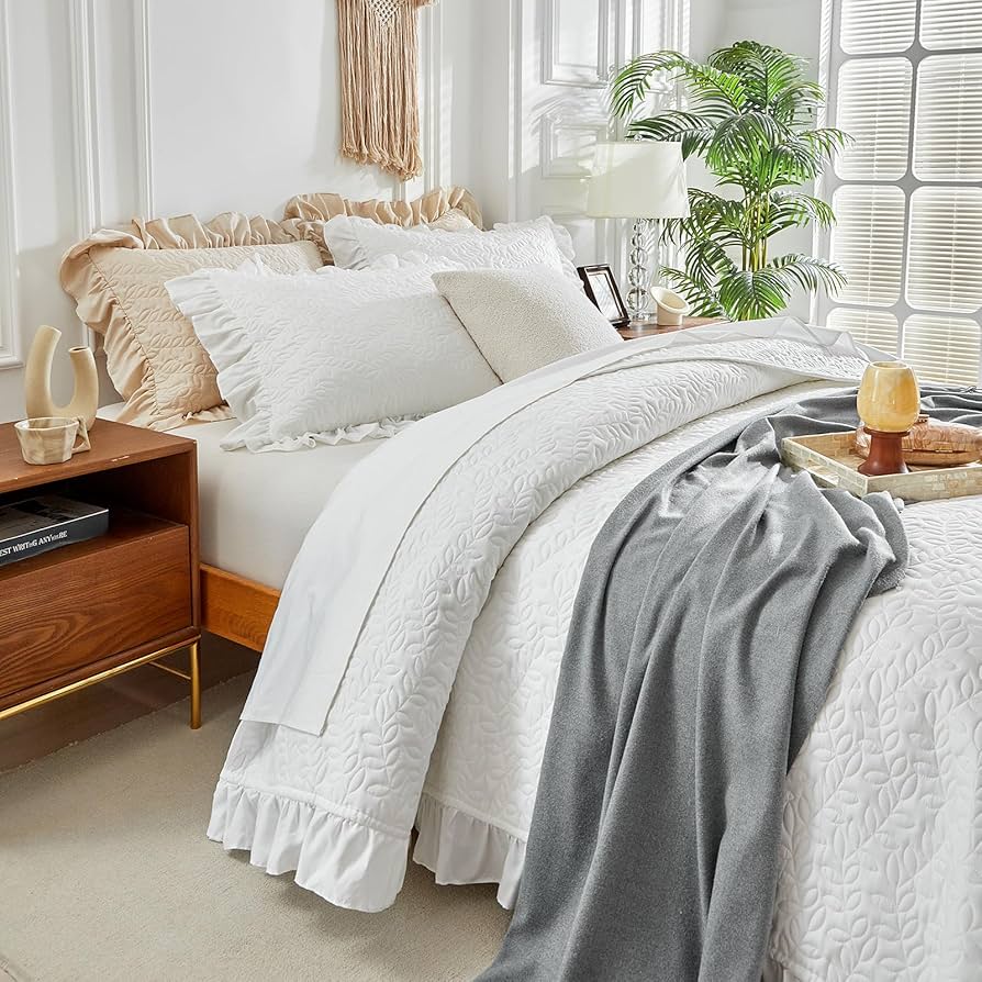 Verwendung als Steppdecke, Tagesdecke, Bettdecke, Bettdecke, Sofabezug. Bestellen Sie 1 Set und verwenden Sie die ganze Saison. Bei niedriger Temperatur trocknen. Bettwäsche-Set mit Rüschen, Queen-Size-Größe, 243,8 x 243,8 cm, 3-teilig, solide, Shabby-Chic-Stil, Landhaus-Rüschen, rustikale Decke, leicht, flauschig, Sommer, übergroße Tagesdecke mit Kissenbezügen ✦ Vielseitig einsetzbar: Perfektes Bettwäsche-Set für Sommer oder warmes Wetter. Bieten Ihnen beste Qualität. Eine bequeme, langlebige, atmungsaktive, leichte Nacht für Ihre Sommernacht. Dieses Bettwäsche-Set besteht aus 100 g/m² Mikrofaser-Außenstoff und einer ultraweichen 320 g/m² Mikrofaser-Innenfüllung. Probieren Sie einen neuen Stil für Ihr Schlafzimmer aus Jetzt Rüschen Bettwäsche Set, King Size Größe, 243,8 x 274,3 cm, 3 teilig, einfarbig, Shabby Chic Stil, Bauernhaus Bettwäsche, rustikale Decke und Sets, leicht, flauschig, Sommer, übergroße Tagesdecke mit bestellen! Kostenloser Versand ab 29u20ac. Vielseitig einsetzbar: Perfektes Bettwäsche Set für Sommer...Geschenkidee: Dieses Rüschen Fransen Bettwäsche Set sieht...Elegantes Rüschen Design Die solide Steppdecke verfügt über einen schlichten Stil, der Ihren Stress nach einem ganzen Arbeitstag und Studium optisch reduziert. Wenn Sie Fragen haben, kontaktieren Sie uns auf Amazon und unser Team wird Ihnen helfen. Andency California King Bettwäsche-Set, 3-teilig, leicht, wendbar Tagesdecke im Shabby-Chic-Stil, Landhaus-Design Übergroß und groß genug für die meisten Schlafzimmer. ✦ Designdetails: Rüschen-Bettwäsche-Set. Weich, strapazierfähig und atmungsaktiv bei warmem Wetter. Wir glauben, dass Sie alle das eleganteste und bequemste Bettwäsche-Set verdienen. Cal King Bettwäsche-Set 3-teilig: Das Andency Bettdecken-Set Cal King Size beinhaltet 1 Bettdecke (274,3 x 243,8 cm) und 2 Kissenbezüge (50,8 x 91,4 cm). Unsere solide Bettdecke kann als Bettdeckeneinlage oder als eigenständige Bettdecke verwendet werden ***Lieferumfang: 1 Steppdecke 96 x 108 cm mit 10,2 cm Rüschen und 2 Kissenbezüge 50,8 x 91,4 cm