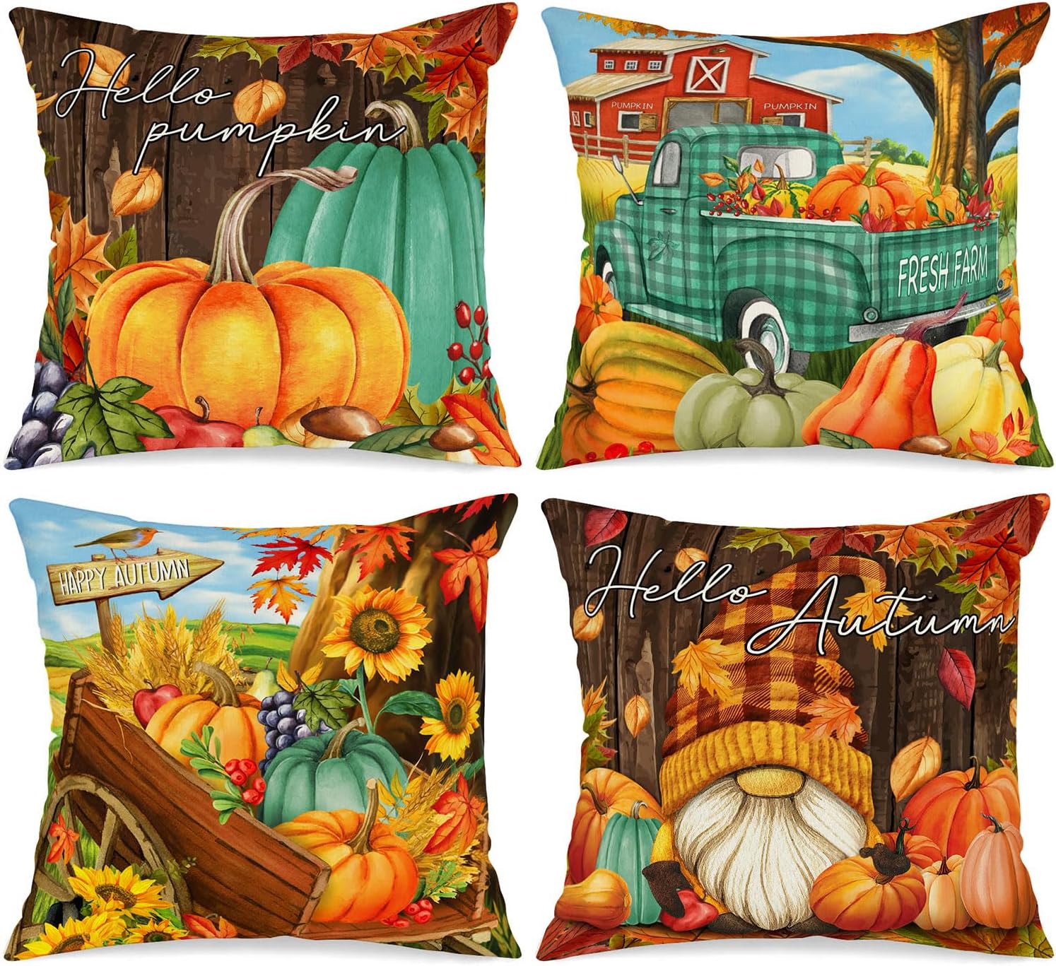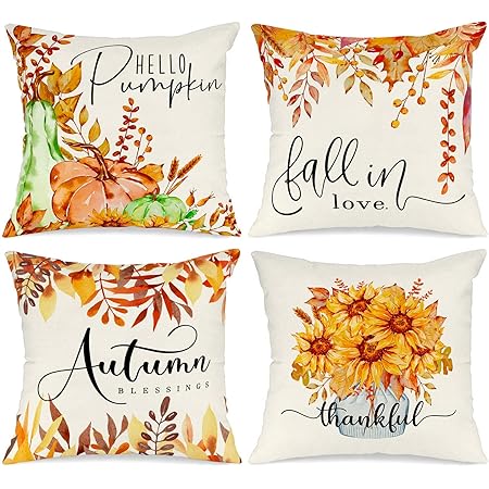 Benjia 4 Stück Kissenbezug Herbst Kissenhülle 45x45 Cm